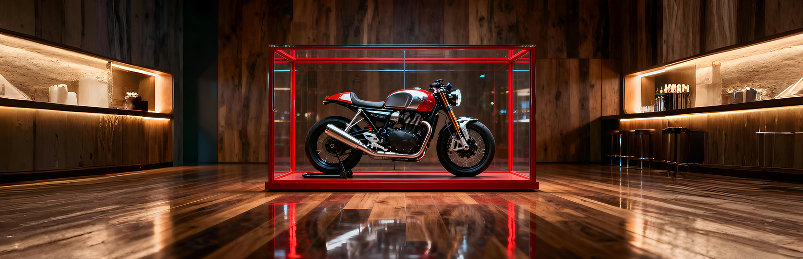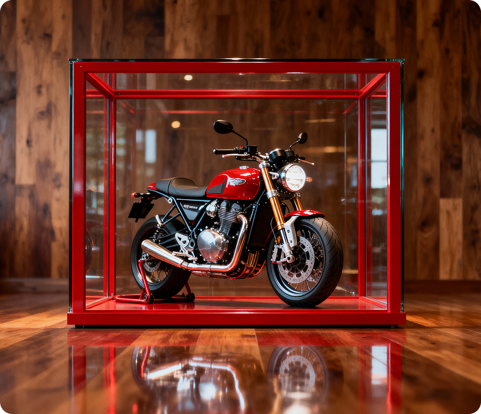 Experience the next evolution in motorcycle display design. Built for riders, builders, and collectors who want their bike to stand out anywhere — from garages and bars to showrooms and events.